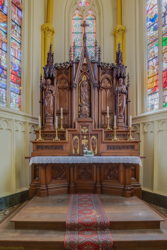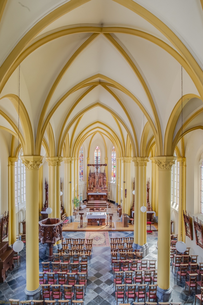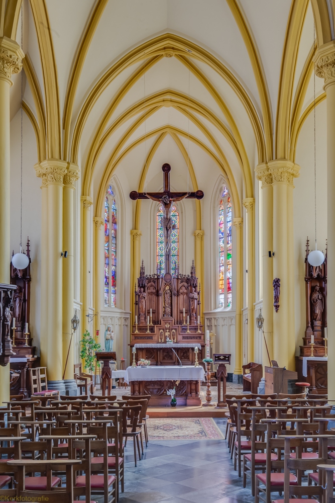 De kerk is een elegante neogotische stijl constructie uitgeroeid in 1864-1865 in bakstenen en kalksteen door de architect Halkin van Luik. Het omvat een koor met driezijdig bed, een transept, een schip van drie baaien waarvan de gangpaden zich uitstrekken om de toren te omvatten. (Bron: up-crisnee-oreye.jimdofree.com/nos-eglises/grandville)