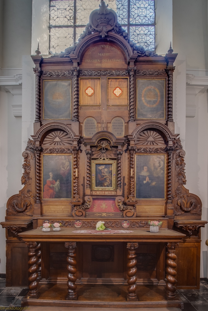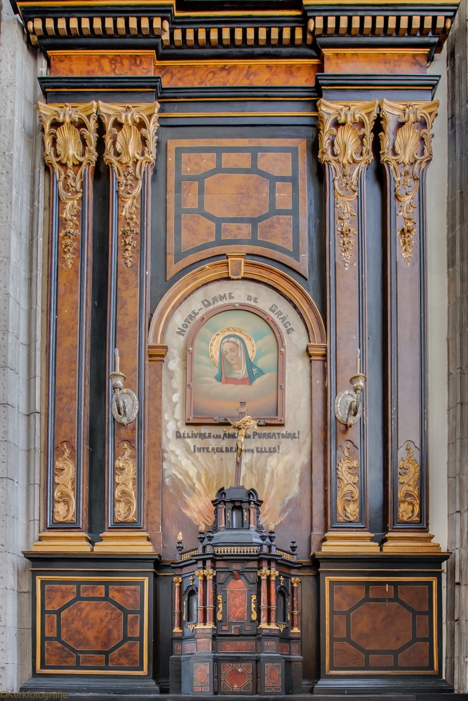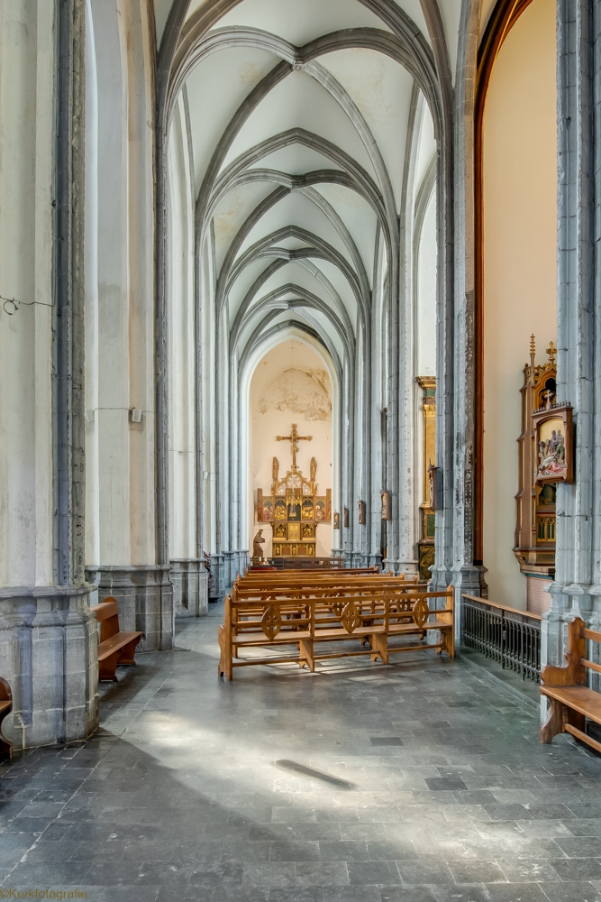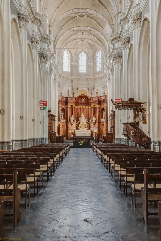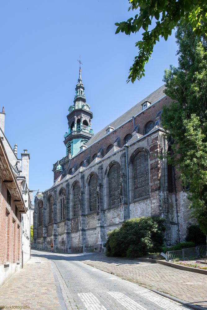 De oorspronkelijke kerk in Henegouwse gotiek werd ingewijd in 1588. Na een brand in 1714 bleven enkel de gotische zuilen bewaard. De rest van de kerk werd opnieuw opgebouwd in de barokstijl. Kijk maar naar het koor en het hoge gedeelte van het schip. De kerk is bekroond met een campanile – een open toren – uit 1720, van waaruit men een mooi zicht heeft over stad en ommeland. (Bron: www.openkerken.eu)