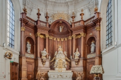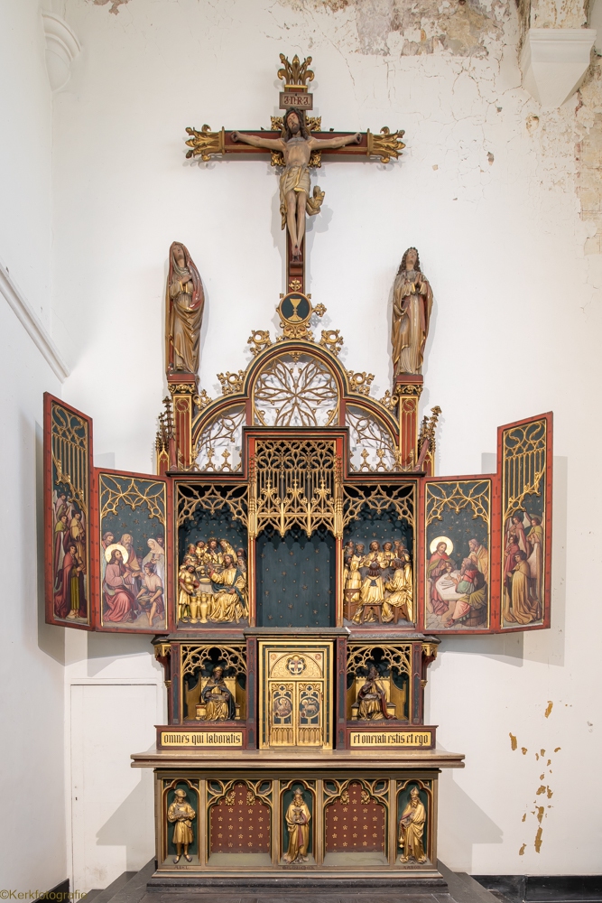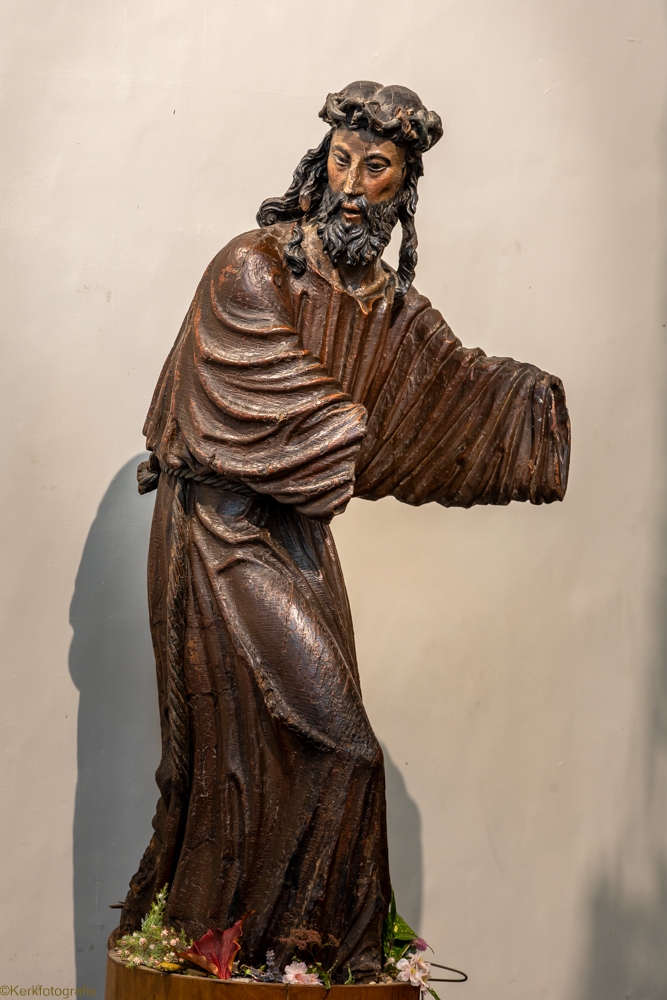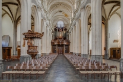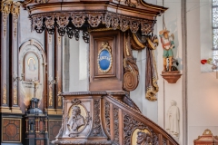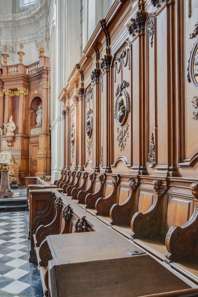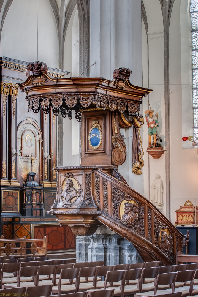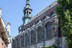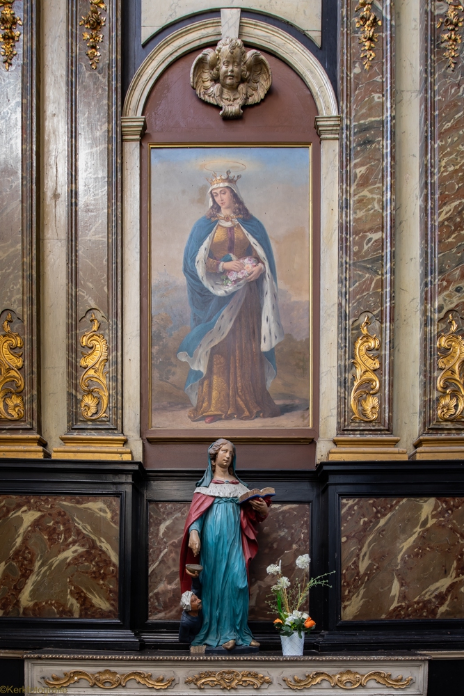De oorspronkelijke kerk in Henegouwse gotiek werd ingewijd in 1588. Na een brand in 1714 bleven enkel de gotische zuilen bewaard. De rest van de kerk werd opnieuw opgebouwd in de barokstijl. Kijk maar naar het koor en het hoge gedeelte van het schip. De kerk is bekroond met een campanile – een open toren – uit 1720, van waaruit men een mooi zicht heeft over stad en ommeland. (Bron: www.openkerken.eu)