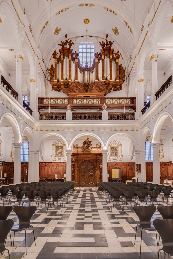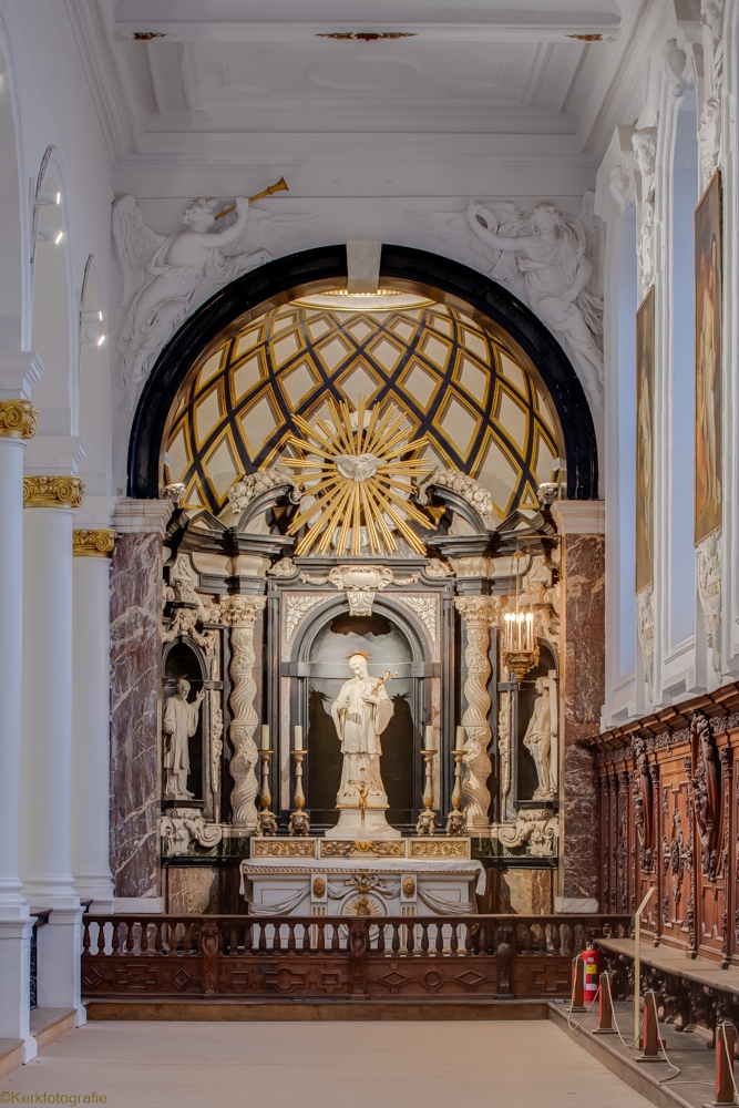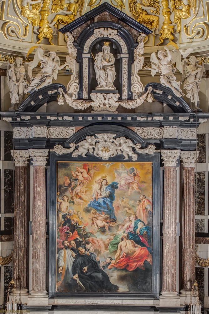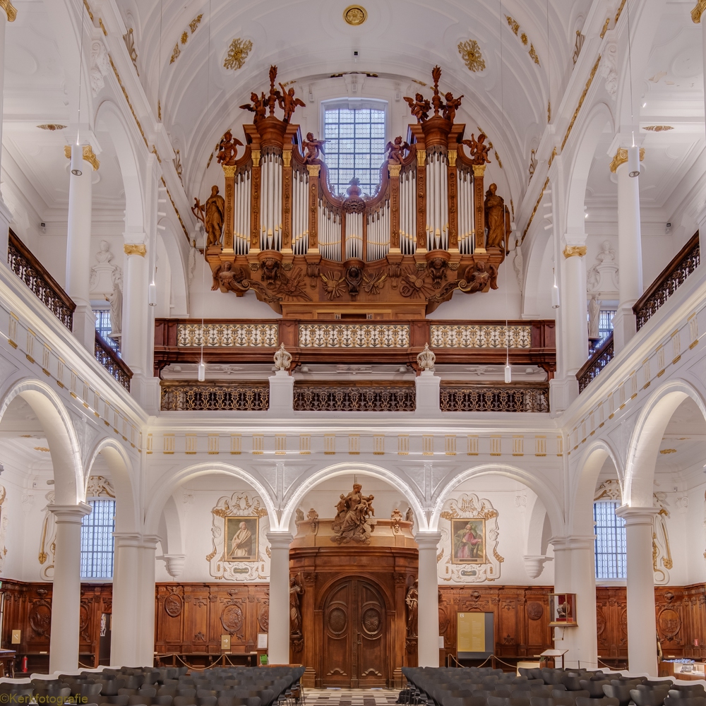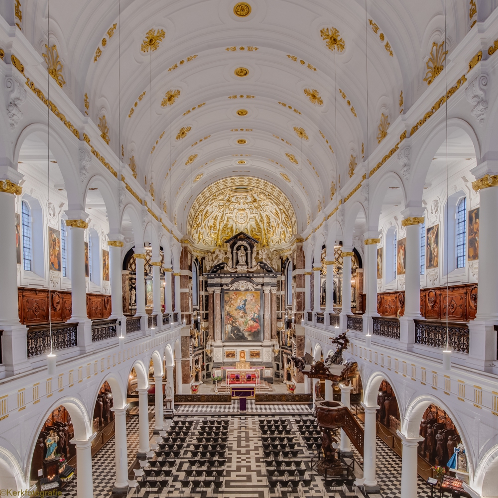 De kerk werd ontworpen door François d’Aguilon en Pieter Huyssens, die, zoals gebruikelijk bij jezuïetenkerken, allebei leden van de orde waren. De kerk werd tussen 1615 en 1621 gebouwd boven op de toenmalige Ankerrui (niet te verwarren met de huidige) voor die aansloot met de Minderbroedersrui. Tussen 1816 en 1830 wilde koning Willem I dit gebouw in een versoberde vorm volgens het calvinistische principe ontdaan van zijn barokke pracht en praal als Nederlandse Hervormde Kerk inrichten. Burgemeester Florent van Ertborn wist hem van dit plan af te brengen en bood hem de reeds door de Fransen gestripte kerk van de Brabantsche Olijfberg in de Winkelstraat aan. Bij de restauratie van de jaren 1980 werd de kerk opnieuw in barokke stijl ingericht. (Bron:Wikipedia)